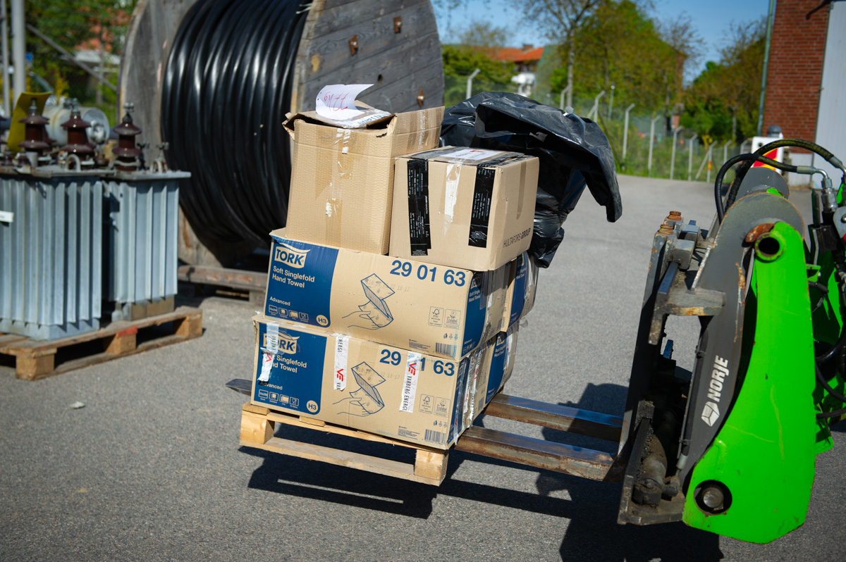Vi har flera förnyelsearbeten inom eldistributionen på gång som kommer att frigöra fler kablar, kabelskåp, transformatorer och tillhörande material samt skyddskläder som har många år kvar på sin livslängd. Inom kort följer vi därför upp den här insatsen med ytterligare en leverans.