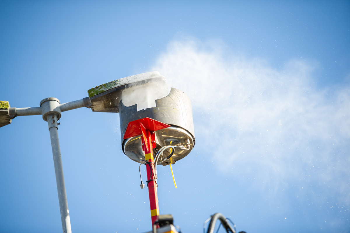 I samarbete med ALP Maskin i Lessebo har vi utvecklat en mobil lösning som möjliggör tvätt av LED-armaturer och skyltar direkt på plats. Vi får nu bättre ljus, längre livslängd samt enklare underhåll och bättre arbetsmiljö – utan att behöva demontera armaturerna.