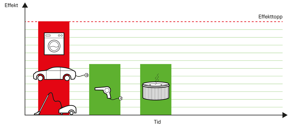 Vi förstår att dina behov inte alltid går att anpassa till elnätets. Men genom att ändra vanorna lite grann, till exempel utnyttja smarta funktioner som finns i många moderna vitvaror, går det att minska effektbehovet.